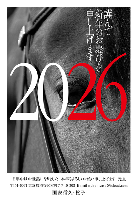 馬の瞳をメインに。年号と合わせて大胆なデザインにまとめました。