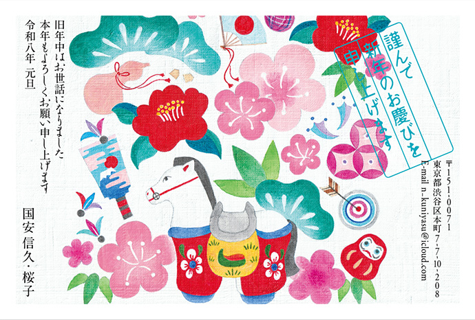 イラストレーター加藤小夜子氏の作品。華やかな色合いが心躍るデザインです。