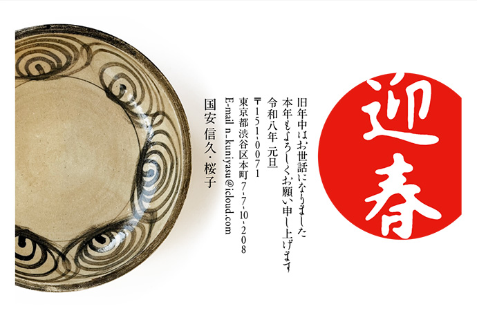 馬の目皿と赤丸をシンメトリーに配置。ザ・日本のお正月です。
