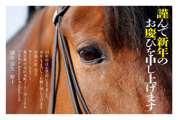 つぶらな馬の瞳をデザインの中心に。馬の美しさが伝わってくる一枚です。