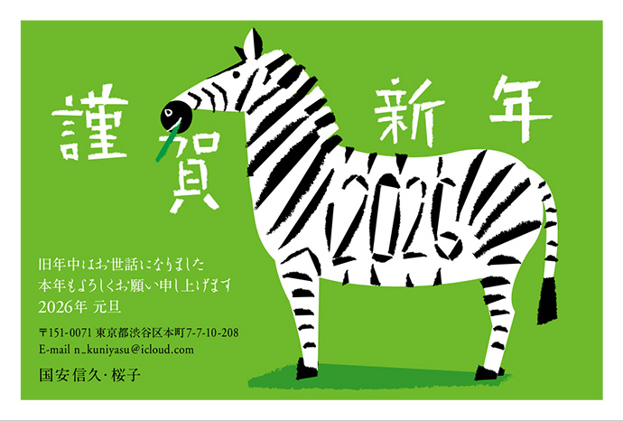 賀詞の一部をむしゃむしゃ。シマウマ柄も細かく楽しみながら描きました。