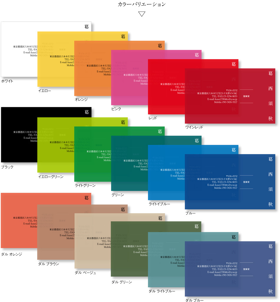背景カラーが濃いものは白抜き文字、淡いものは黒文字でお作りします。
